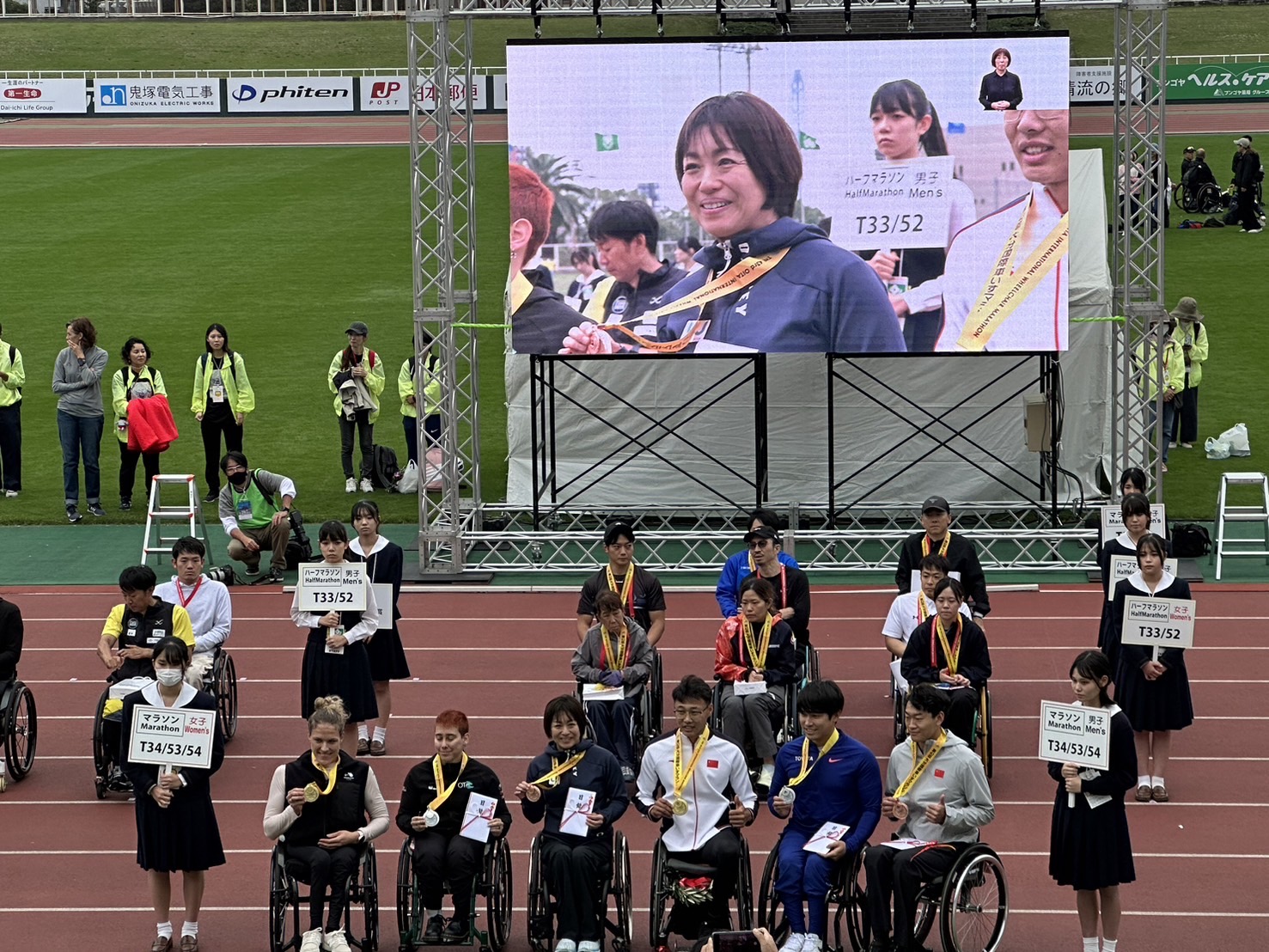 ゲストランナーとして、ワミレスコスメティックスがサポートする土田和歌子選手や、今年のパリパラリンピックの車いすマラソン競技で銅メダルを獲得した鈴木朋樹選手、パリパラリンピックの車いすマラソンの実況解説をされ、自身も元日本代表の車いすマラソン選手であった花岡伸和氏が参加され、豪華な大会となっていました。